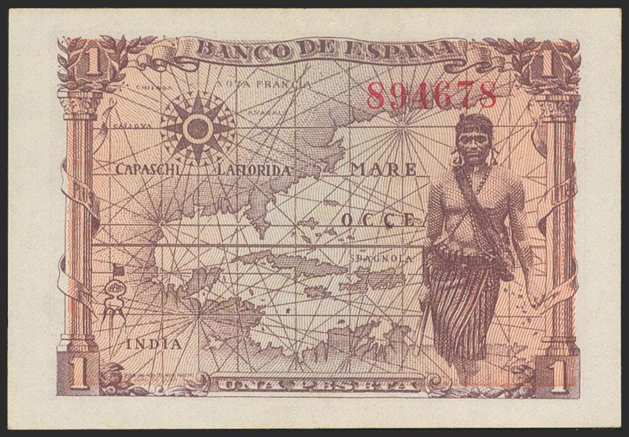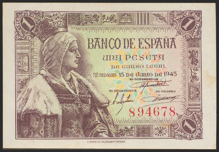 1 Peseta. 15 de Junio de 1945. Sin serie. (Edifil 2021: 448). Inusual, conserva parte del apresto original. EBC+.