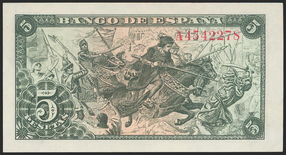 5 Pesetas. 15 de Junio de 1945. Serie A. (Edifil 2021: 449a). Apresto original. SC.
