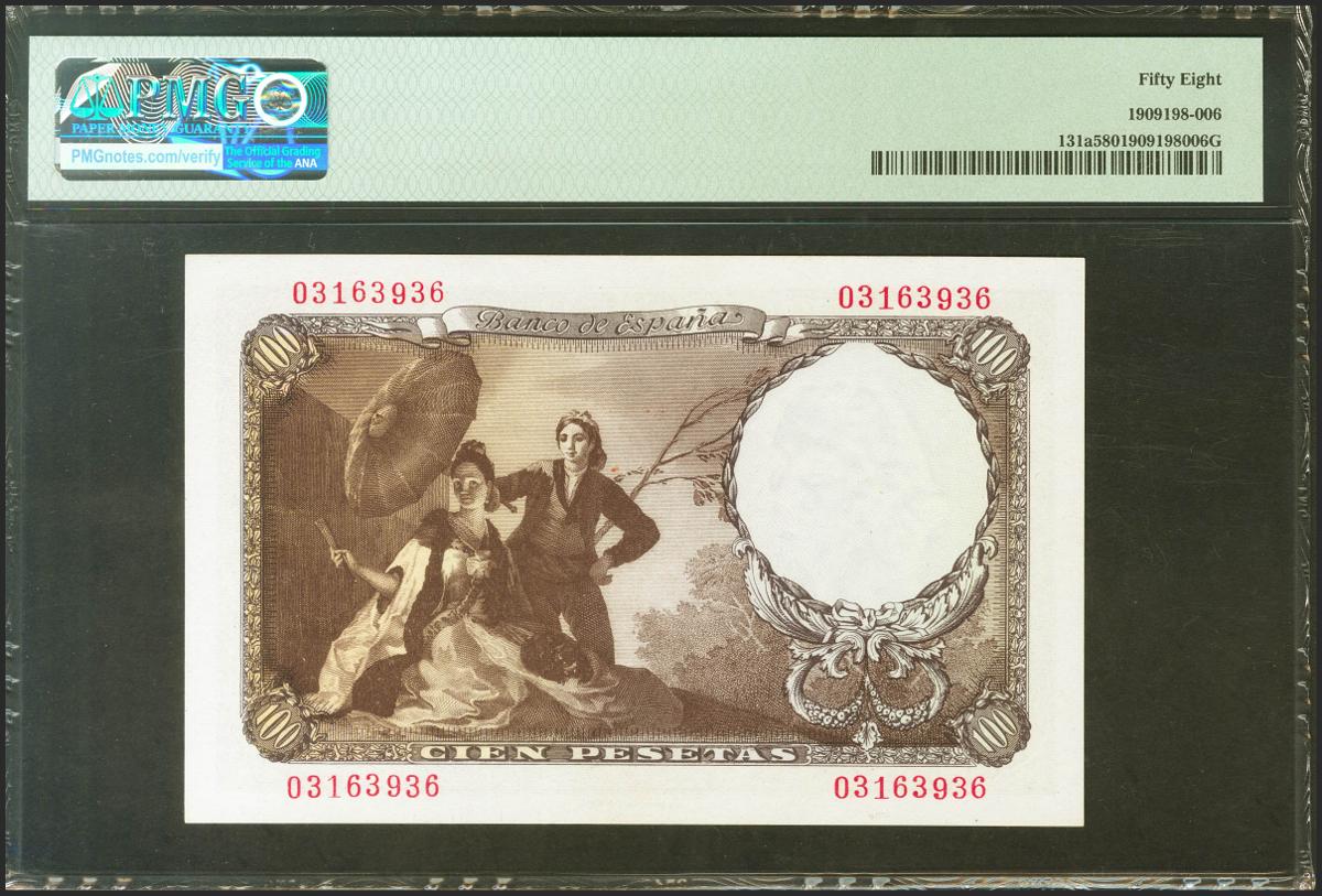 100 Pesetas. 19 de Febrero de 1946. Sin serie. (Edifil 2021: 451, Pick: 131). EBC++. Encapsulado PMG58.