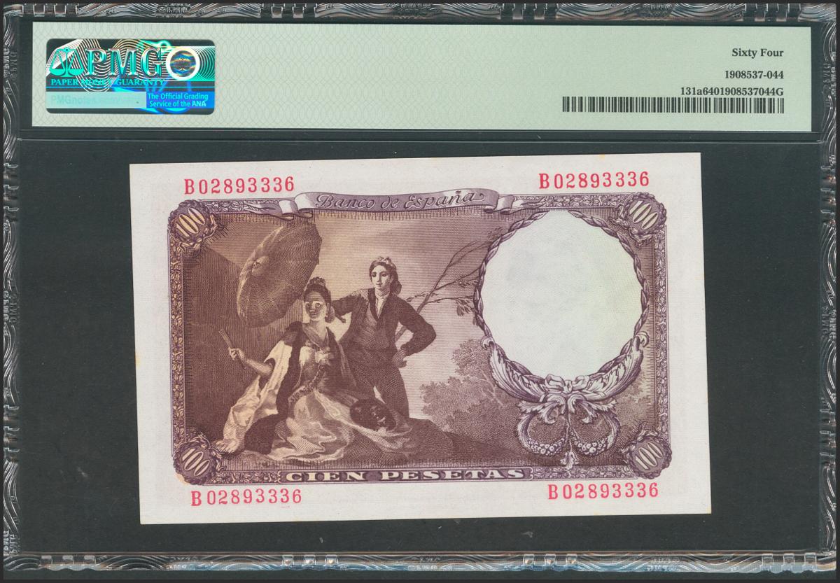 100 Pesetas. 19 de Febrero de 1946. Serie B. (Edifil 2017: 451b). SC. Encapsulado PMG64.