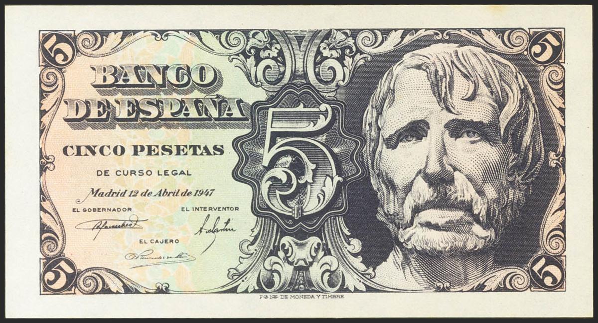 5 Pesetas. 12 de Abril de 1947. Serie C. (Edifil 2021: 454a). Apresto original. SC-.