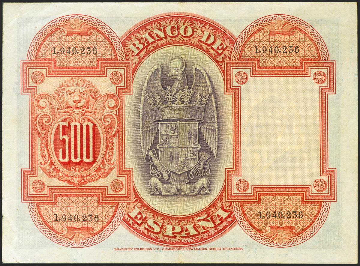 500 Pesetas. 24 de Julio de 1927. Sin serie y numeración posterior al 1602000. (Edifil 2021: 352). Conserva algo de apresto original. EBC-.