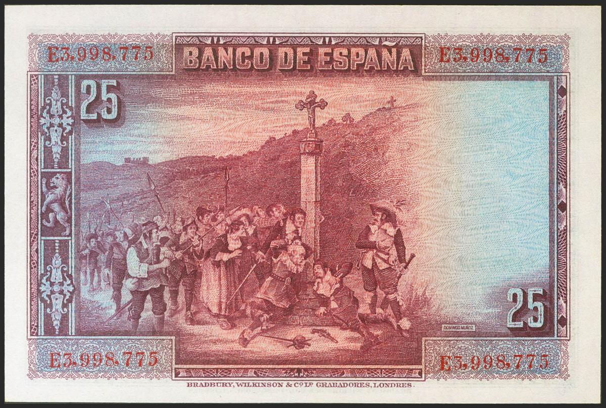 25 Pesetas. 15 de Agosto de 1928. Serie E, última serie emitida. (Edifil 2021: 353). Conserva todo su apresto original. SC.