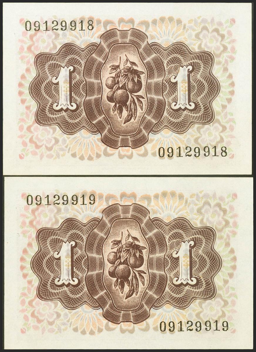 1 Peseta. 19 de Junio de 1949. Pareja correlativa. Sin serie. (Edifil 2021: 457). Apresto original. SC.