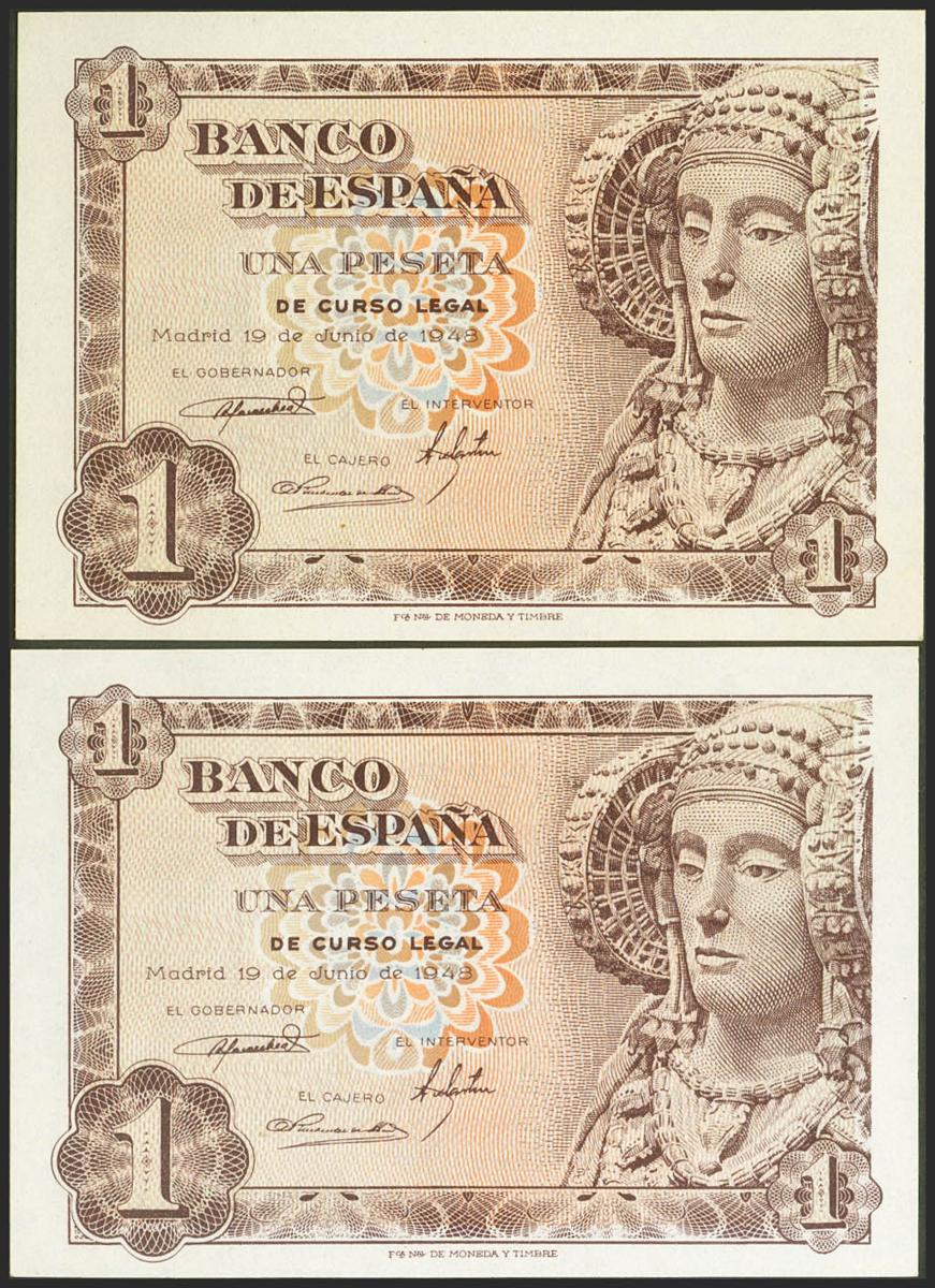 1 Peseta. 19 de Junio de 1949. Pareja correlativa. Sin serie. (Edifil 2021: 457). Apresto original. SC.