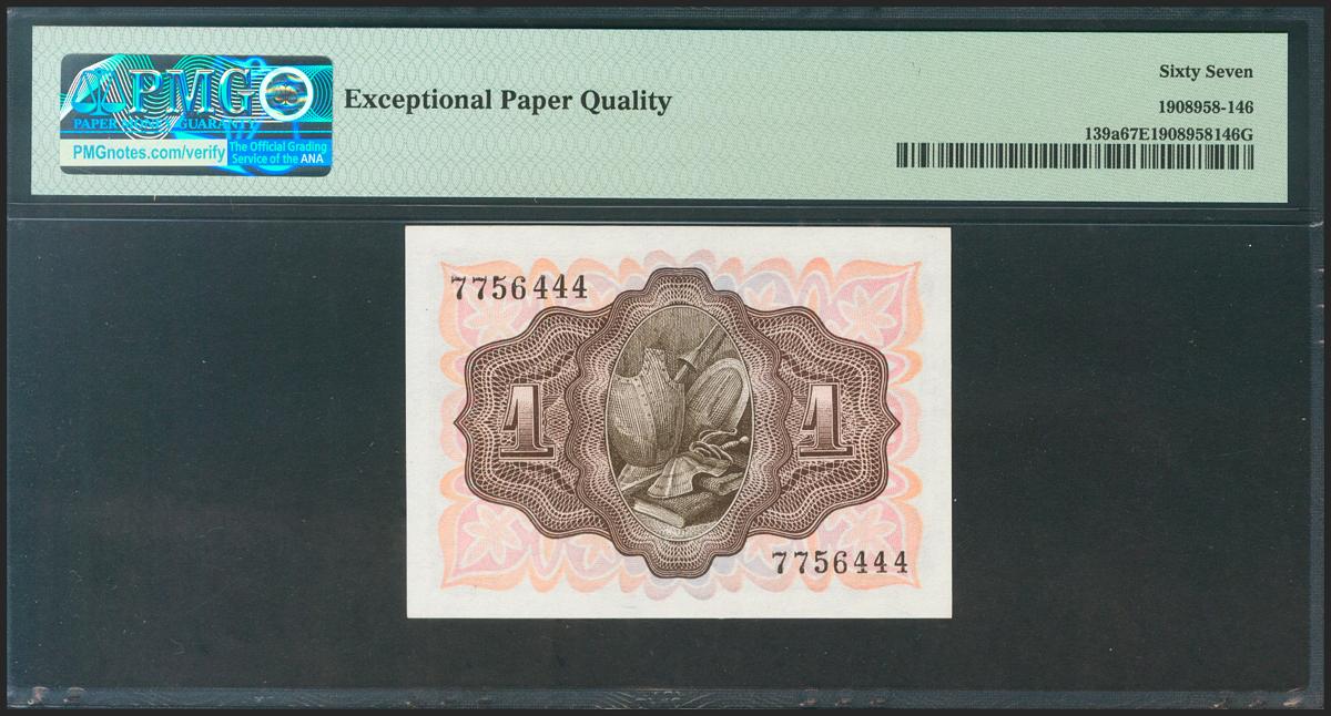 1 Pesetas. 19 de Noviembre de 1951. Sin serie. (Edifil 2021: 461, Pick: 139a). Raro en esta calidad, apresto original. SC. Encapsulado PMG67EPQ.