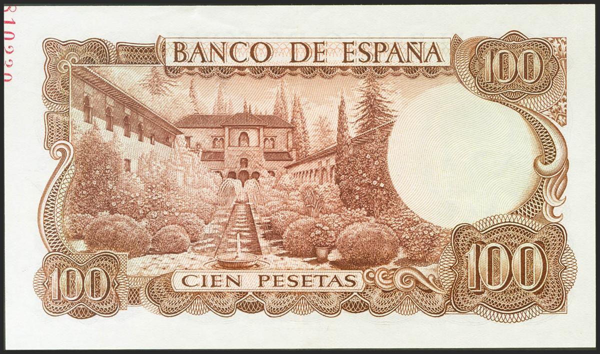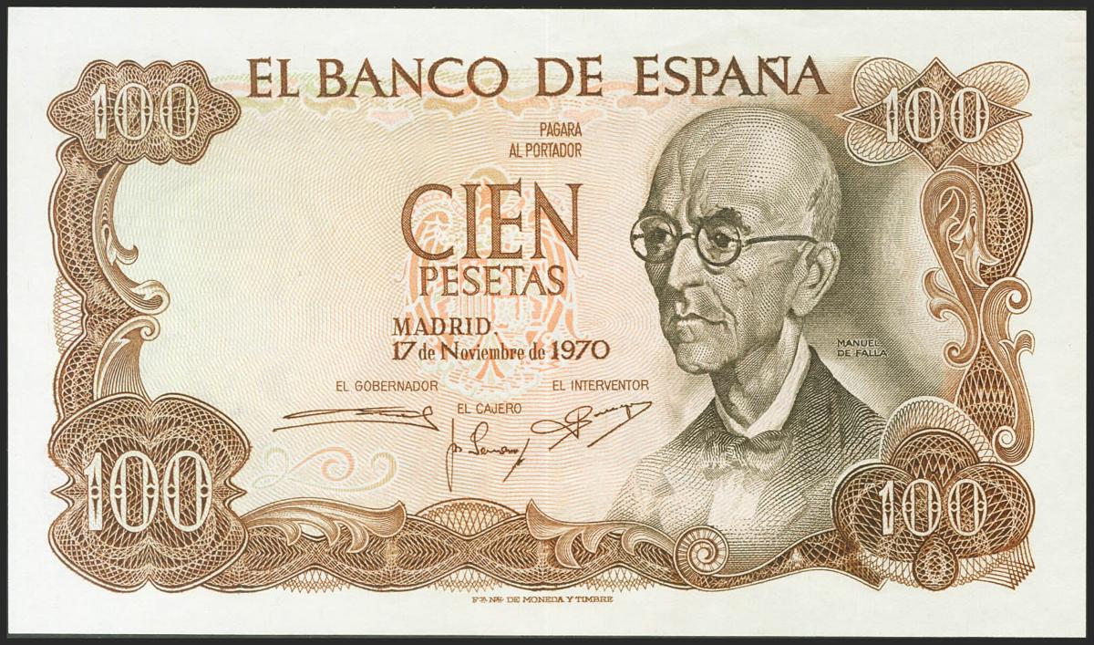 100 Pesetas. 17 de Noviembre de 1970. Variedad de falta de color de la numeración en el anverso del billete. Serie 4N. (Edifil 2021: 472c). Rarísimo, conserva todo su apresto original. EBC.