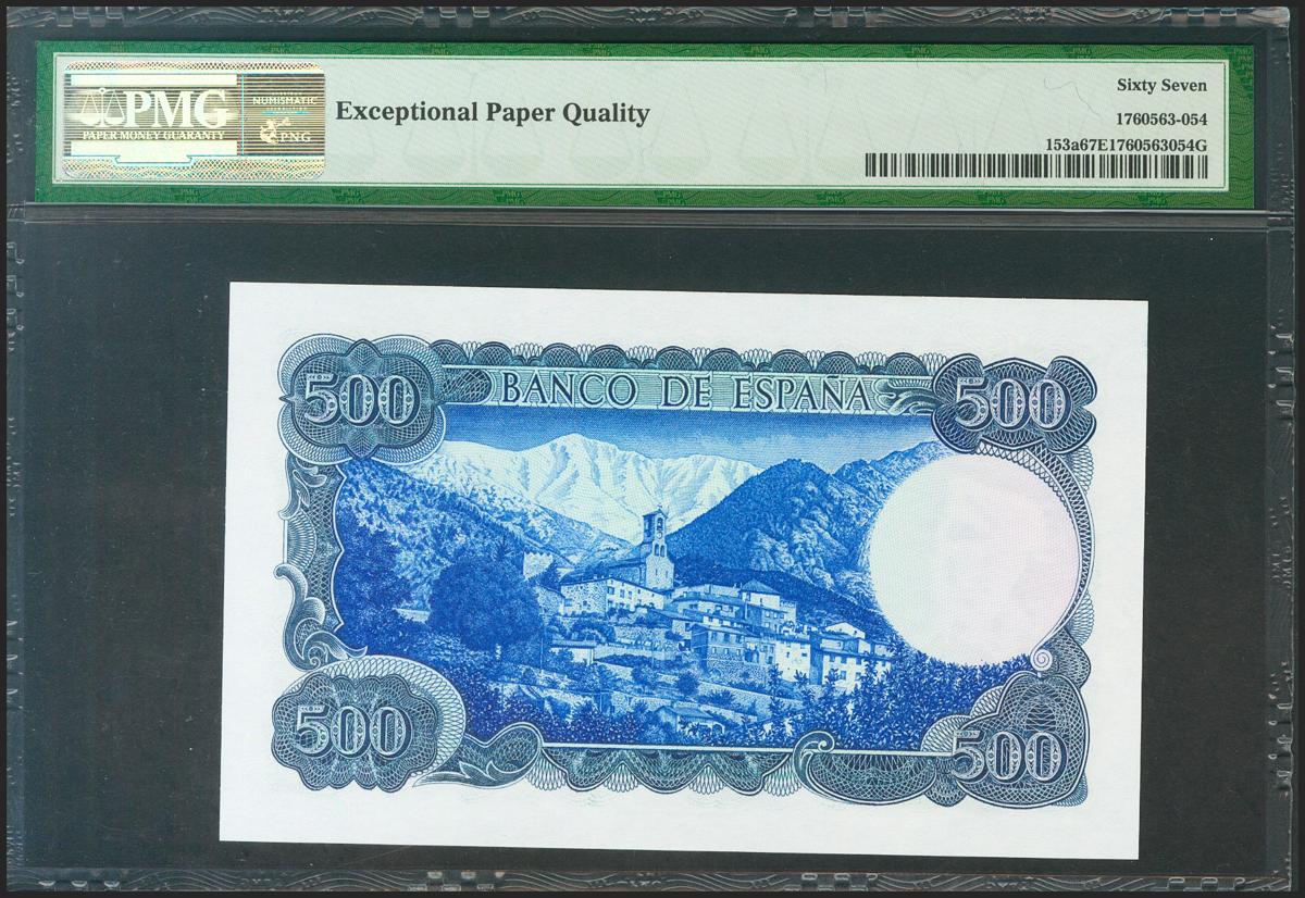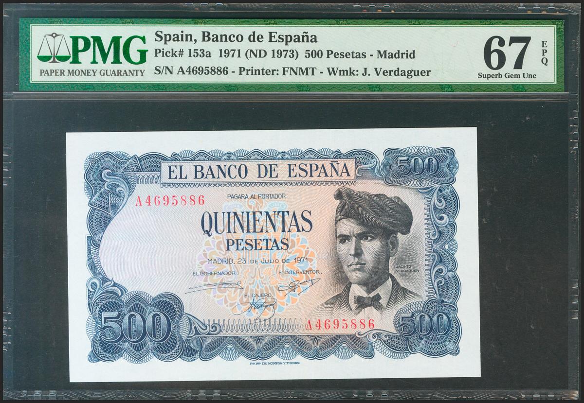 500 Pesetas. 23 de Julio de 1971. Serie A. (Edifil 2021: 473a). Apresto original, inusual así. SC. Encapsulado PMG67EPQ.