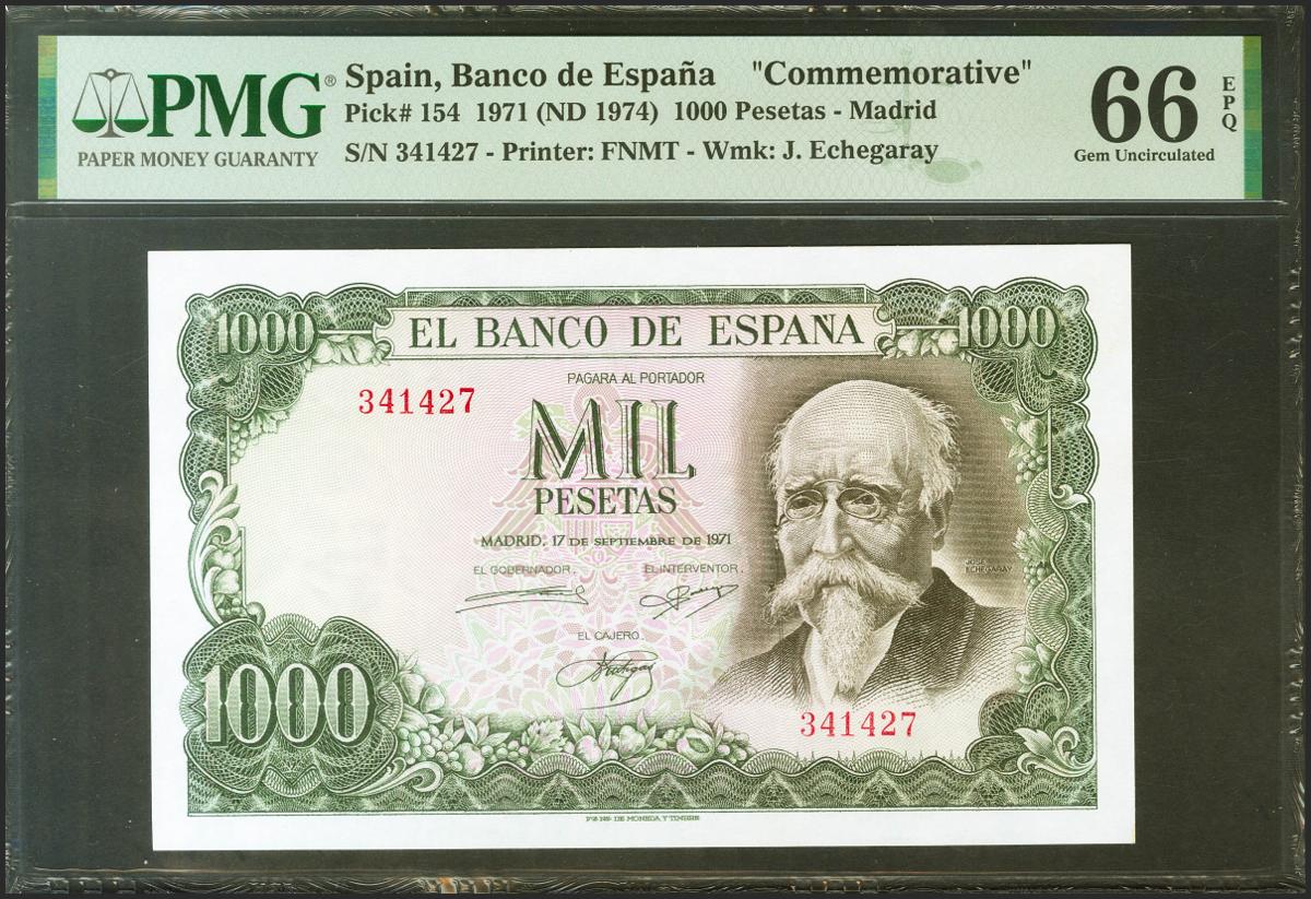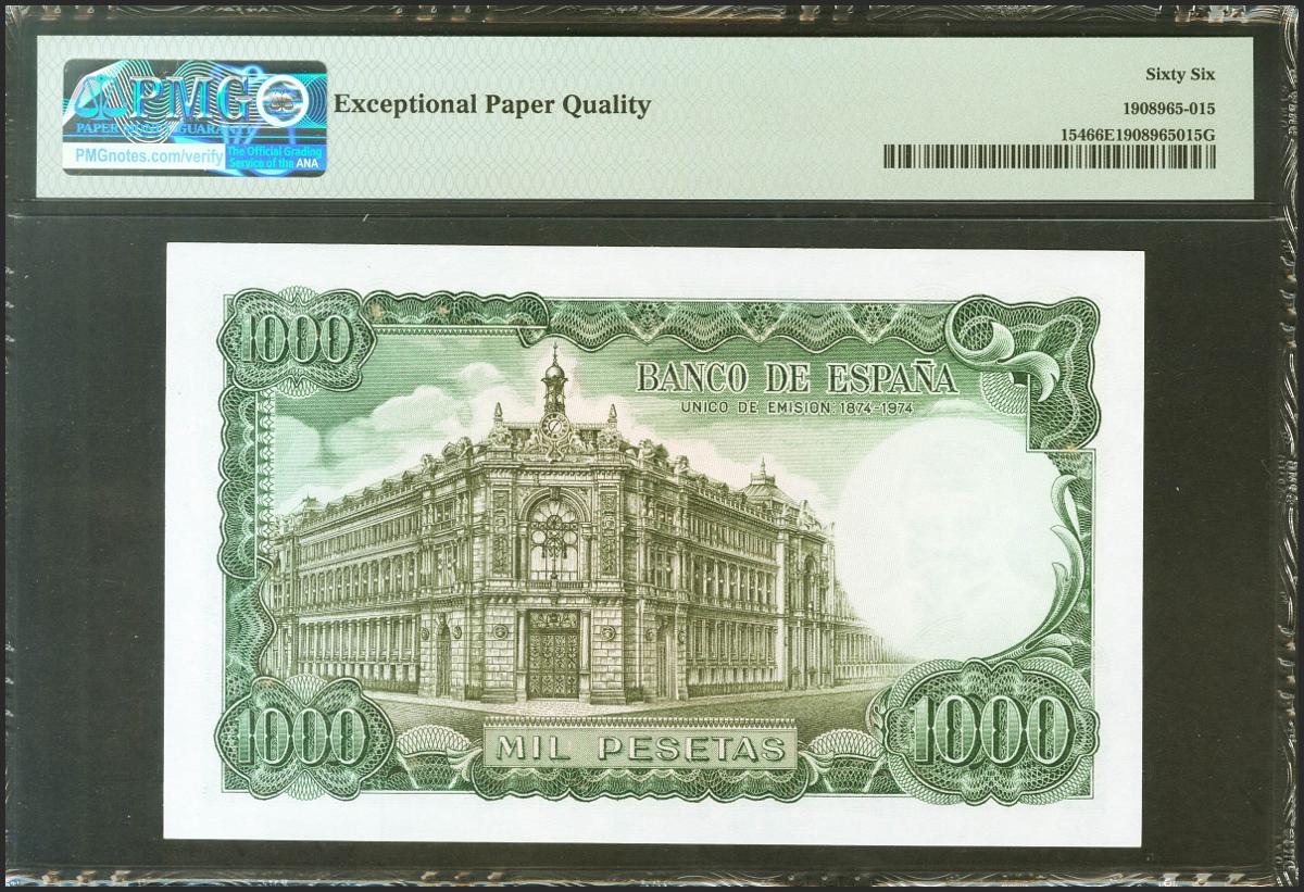 1000 Pesetas. 17 de Septiembre de 1971. Sin serie. (Edifil 2021: 474, Pick: 154). Raro en esta calidad y apresto original. SC. Encapsulado PMG66EPQ.
