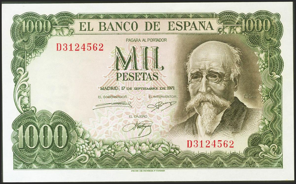 1000 Pesetas. 17 de Septiembre de 1971. Serie D. (Edifil 2021: 474b). Conserva todo el apresto original. SC.