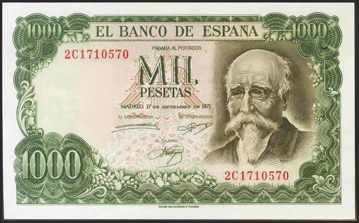 1000 Pesetas. 17 de Septiembre de 1971. Serie 1J. (Edifil 2021: 474c). Apresto original. SC.