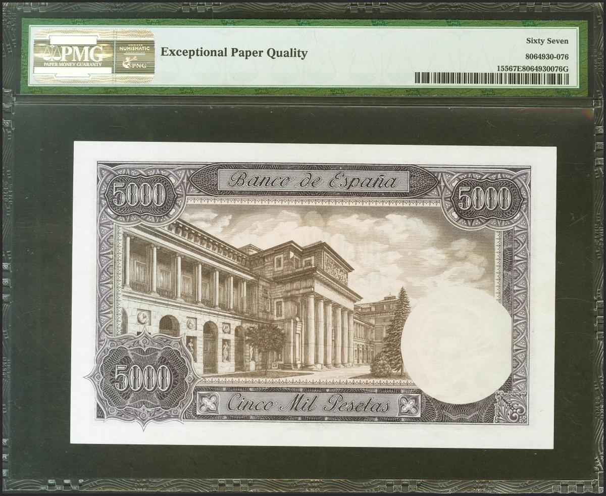 5000 Pesetas. 6 de Febrero de 1976. Sin serie. (Edifil 2021: 475, Pick: 155). Apresto original. Encapsulado PMG67EPQ.