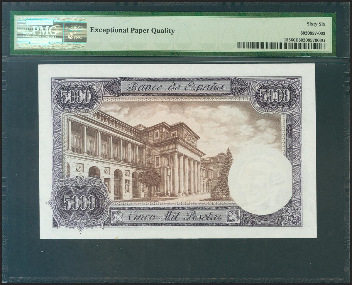 5000 Pesetas. 6 de Febrero de 1976. Serie 1A. (Edifil 2021: 475a). Apresto original. SC. Encapsulado PMG66EPQ.