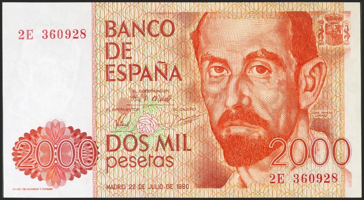 2000 Pesetas. 22 de Julio de 1980. Serie 2E. (Edifil 2021: 479a). SC-.