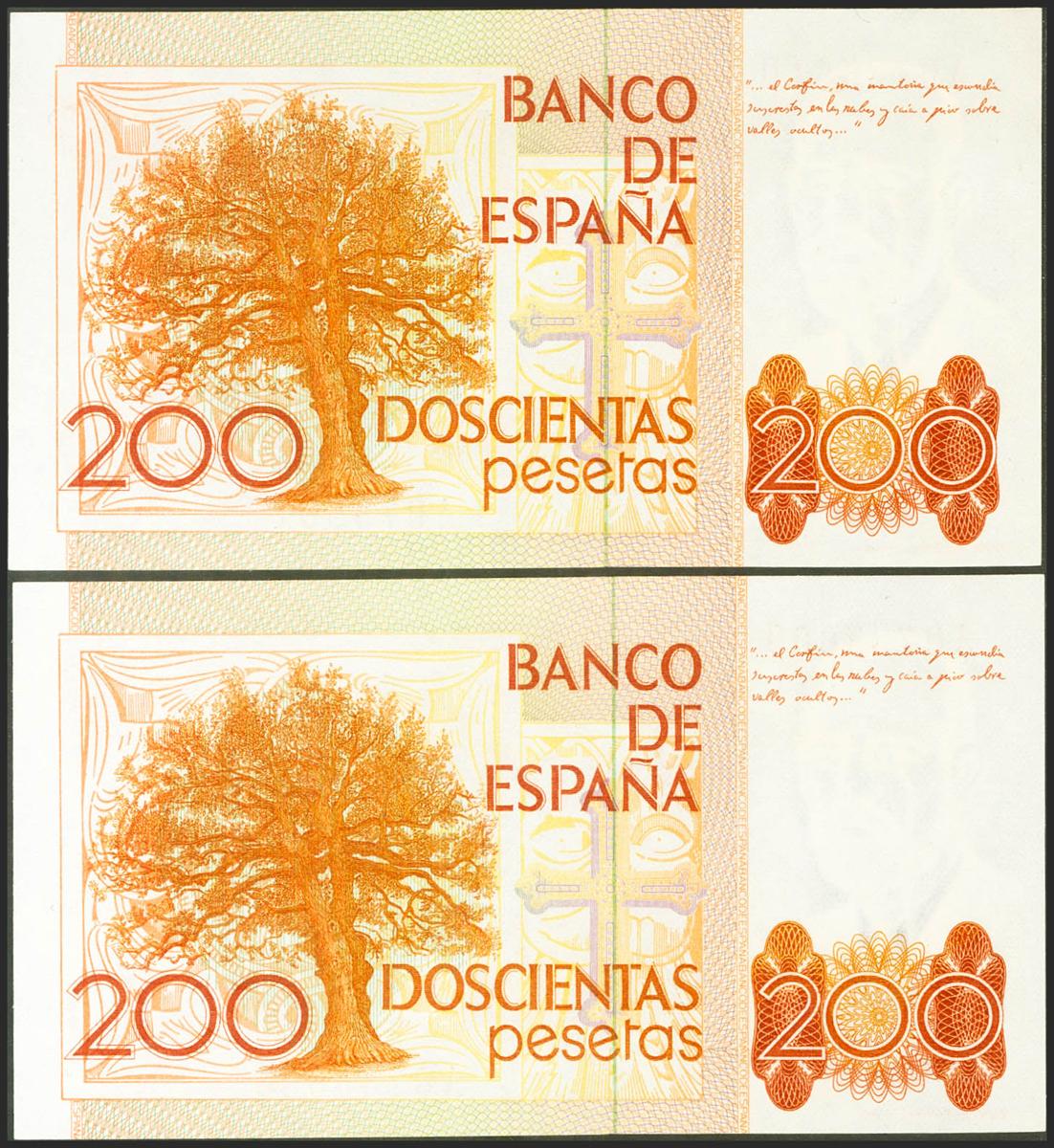 200 Pesetas. 16 de Septiembre de 1980. Pareja correlativa. Serie A. (Edifil 2021: 480a). SC.