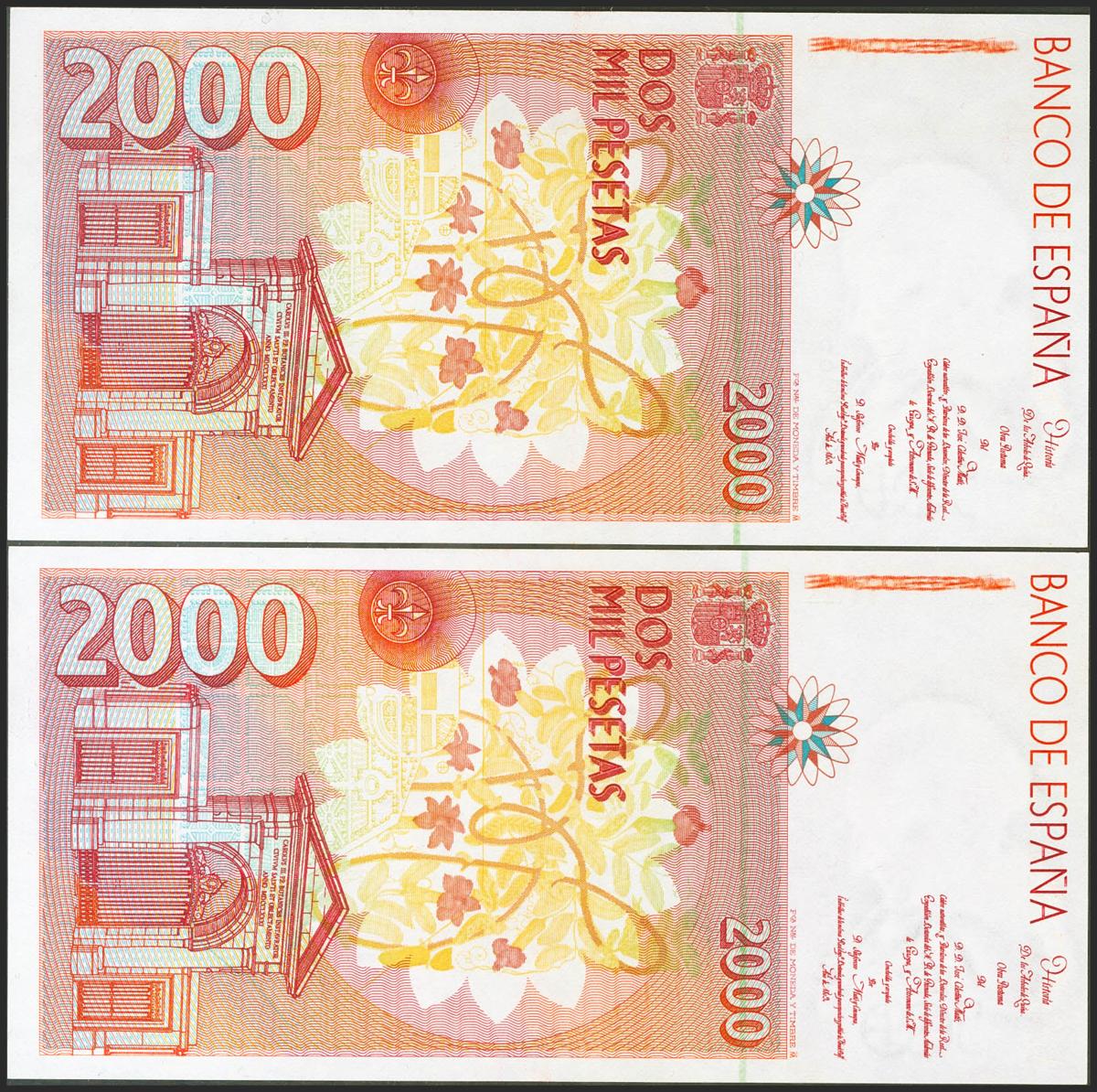 2000 Pesetas. 24 de Abril de 1992. Pareja correlativa. Sin serie. (Edifil 2021: 482). EBC++.