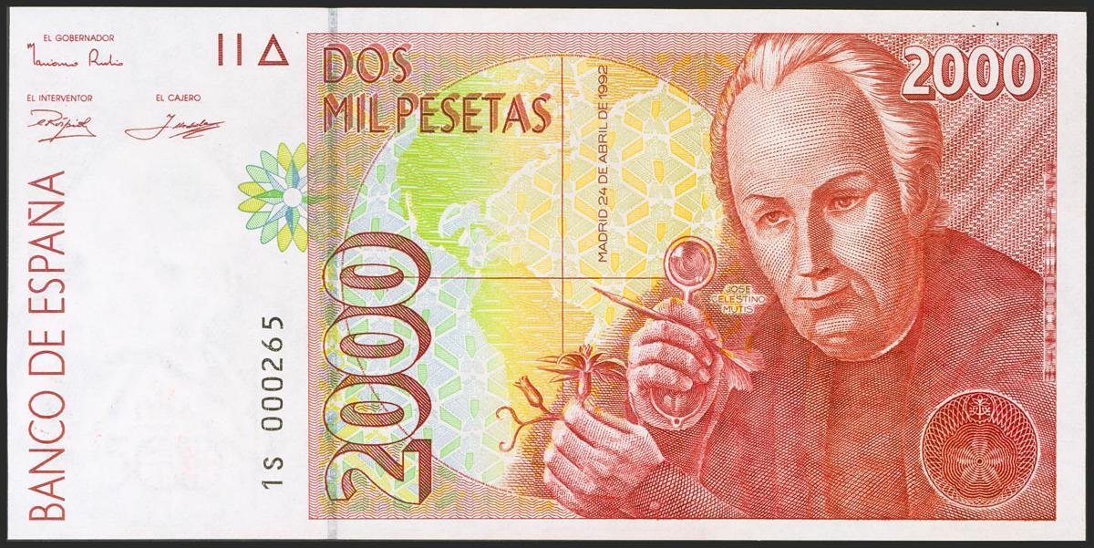 2000 Pesetas. 24 de Abril de 1992. Serie 1S y numeración bajísima. (Edifil 2021: 482A). SC.