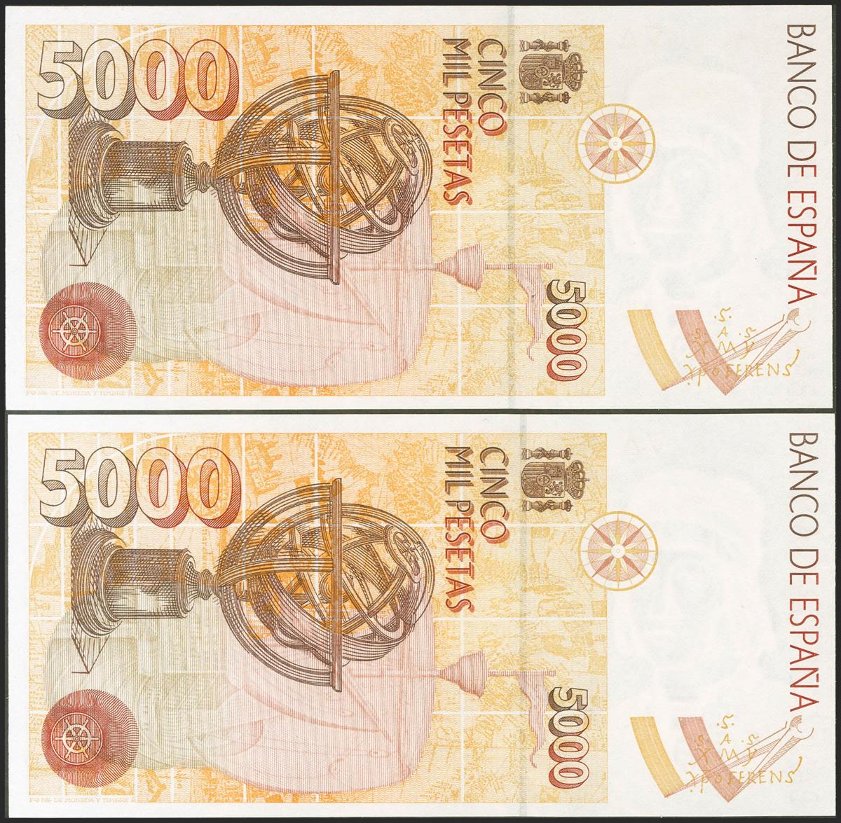 5000 Pesetas. 12 de Octubre de 1992. Pareja correlativa. Sin serie. (Edifil 2021: 484). SC.