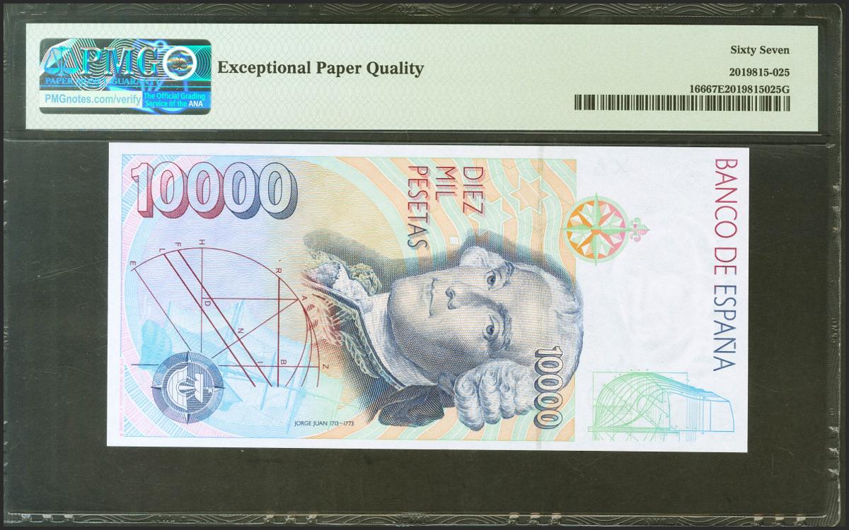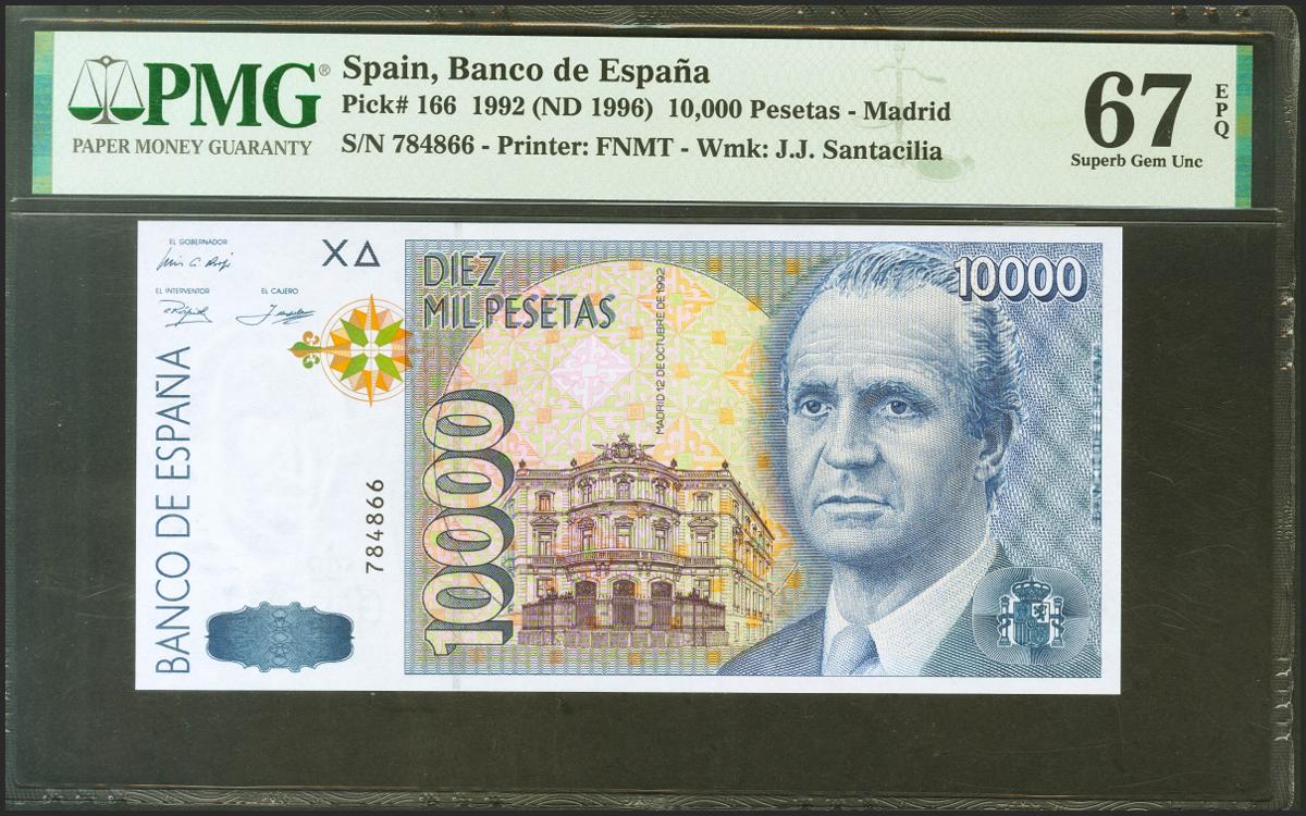 10000 Pesetas. 12 de Octubre de 1992. Sin serie. (Edifil 2021: 485, Pick: 166). Apresto original. SC. Encapsulado PMG67EPQ.