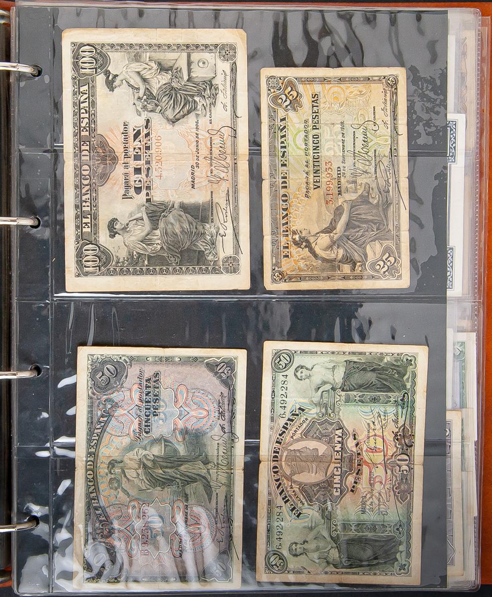Interesante conjunto de 50 billetes del Banco de España de distintas épocas, algunos de ellos repetidos y en diversas calidades, además de un conjunto de 84 billetes de la Guerra Civil de diferentes localidades también en calidades diversas y un pequeño lote de cupones. SC/RC. A EXAMINAR.