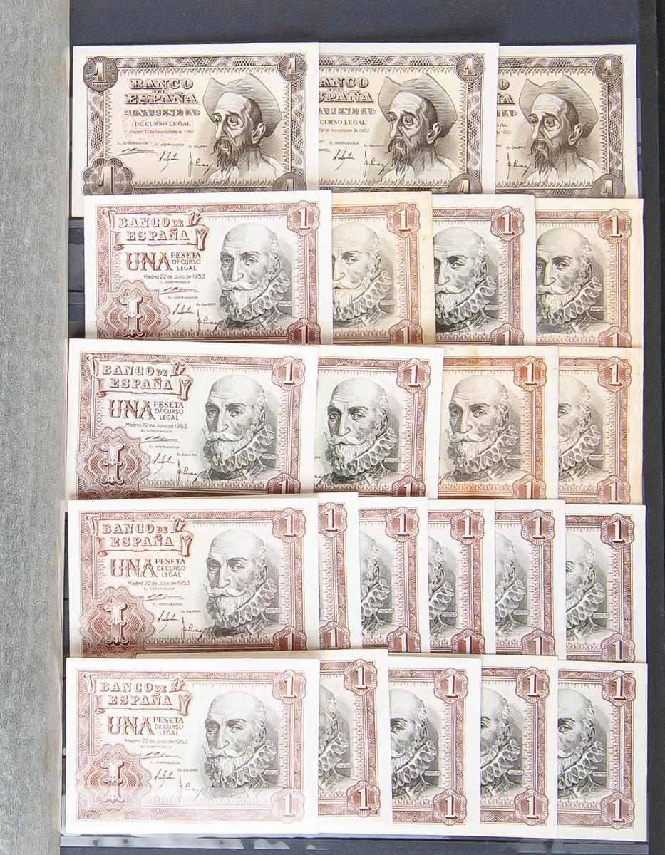 Conjunto de más de 118 billetes emitidos por el Banco de España de diferentes emisiones y en calidades y cantidades diversas (se incluyen siete billetes de 100 Pesetas de 1970 con numeración casi correlativa) y una serie de billetes emitidos en Denia durante la Guerra Civil (Gónzález: 2212/14). SC/MBC+. A EXAMINAR.