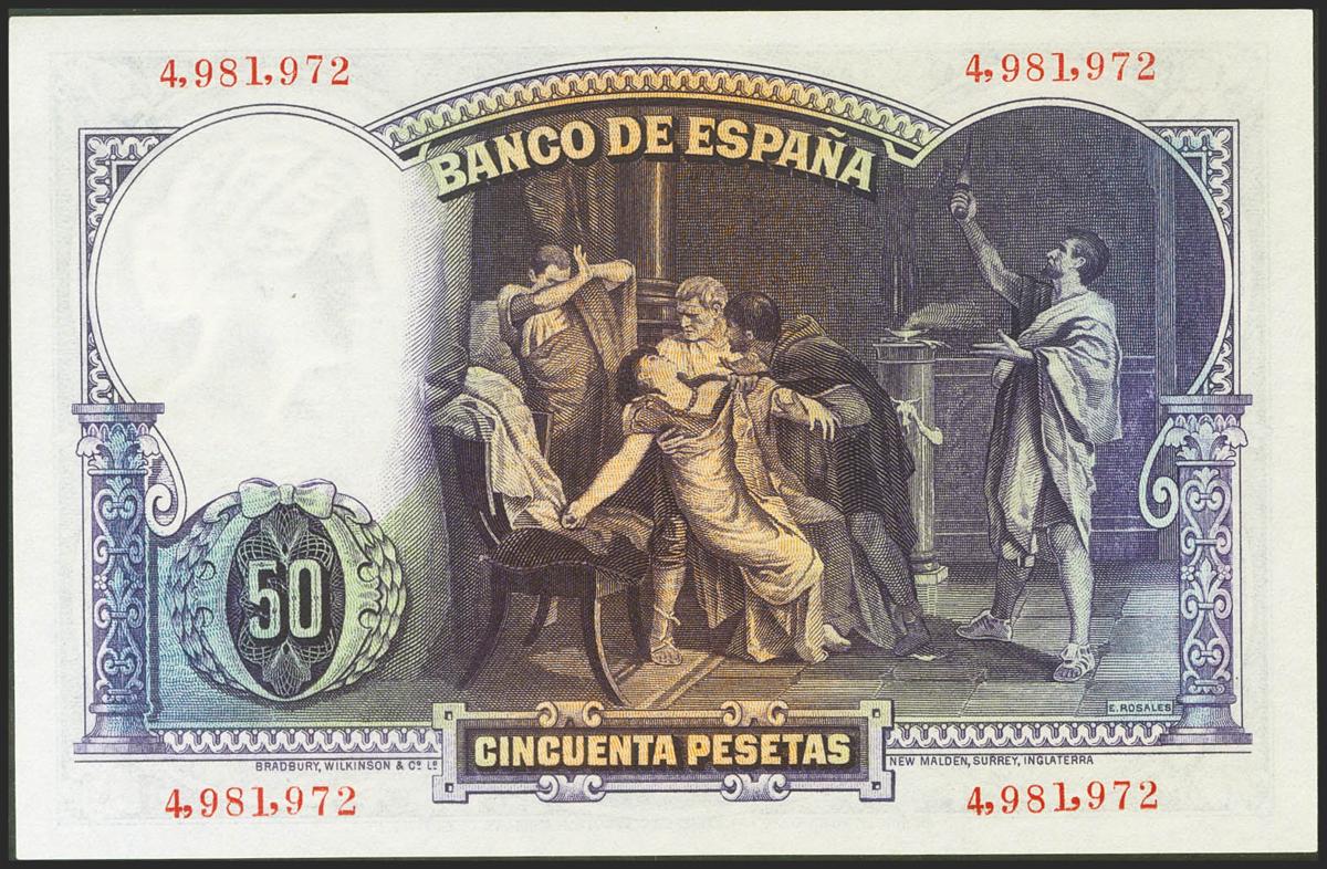 50 Pesetas. 25 de Agosto de 1931. Sin serie. (Edifil 2021: 359). Muy raro en esta superlativa calidad, conserva todo su apresto original. SC.