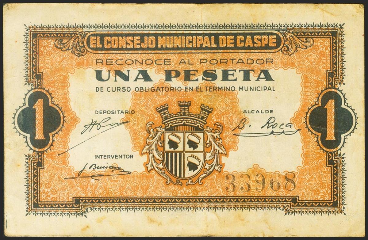 CASPE (ZARAGOZA). 1 Peseta. (1936ca). (González: 1739). MBC.