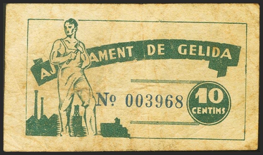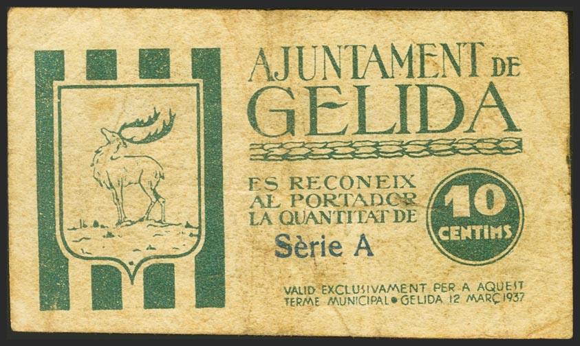 GELIDA (BARCELONA). 10 Céntimos. 12 de Marzo de 1937. Serie A. (González: 8015). MBC.