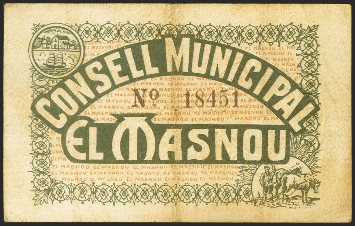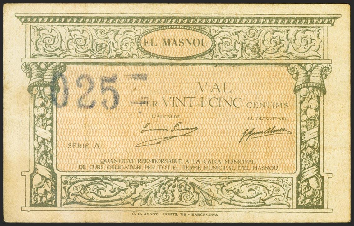 EL MASNOU (BARCELONA). 25 Céntimos. (1936ca). Serie A. (González: 8605). MBC+.