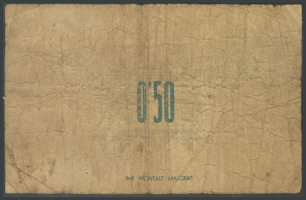 PALAFOLLS (BARCELONA). 50 Céntimos. 29 de Mayo de 1937. Serie A. (González: 9065). Raro. RC.