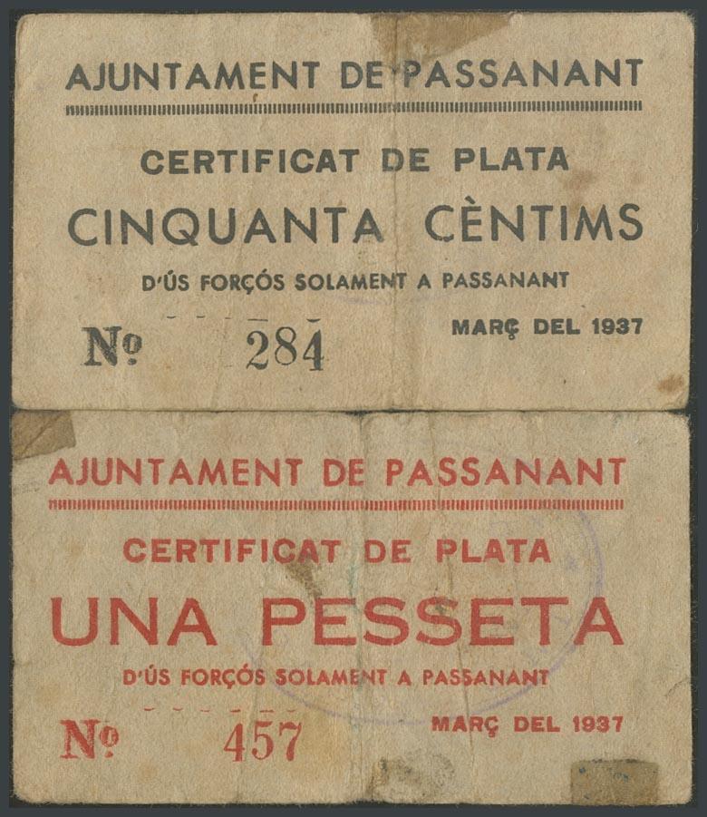 PASSANANT (TARRAGONA). 50 Céntimos y 1 Peseta. Marzo 1937. (González: 9162/63). Raros. BC+.