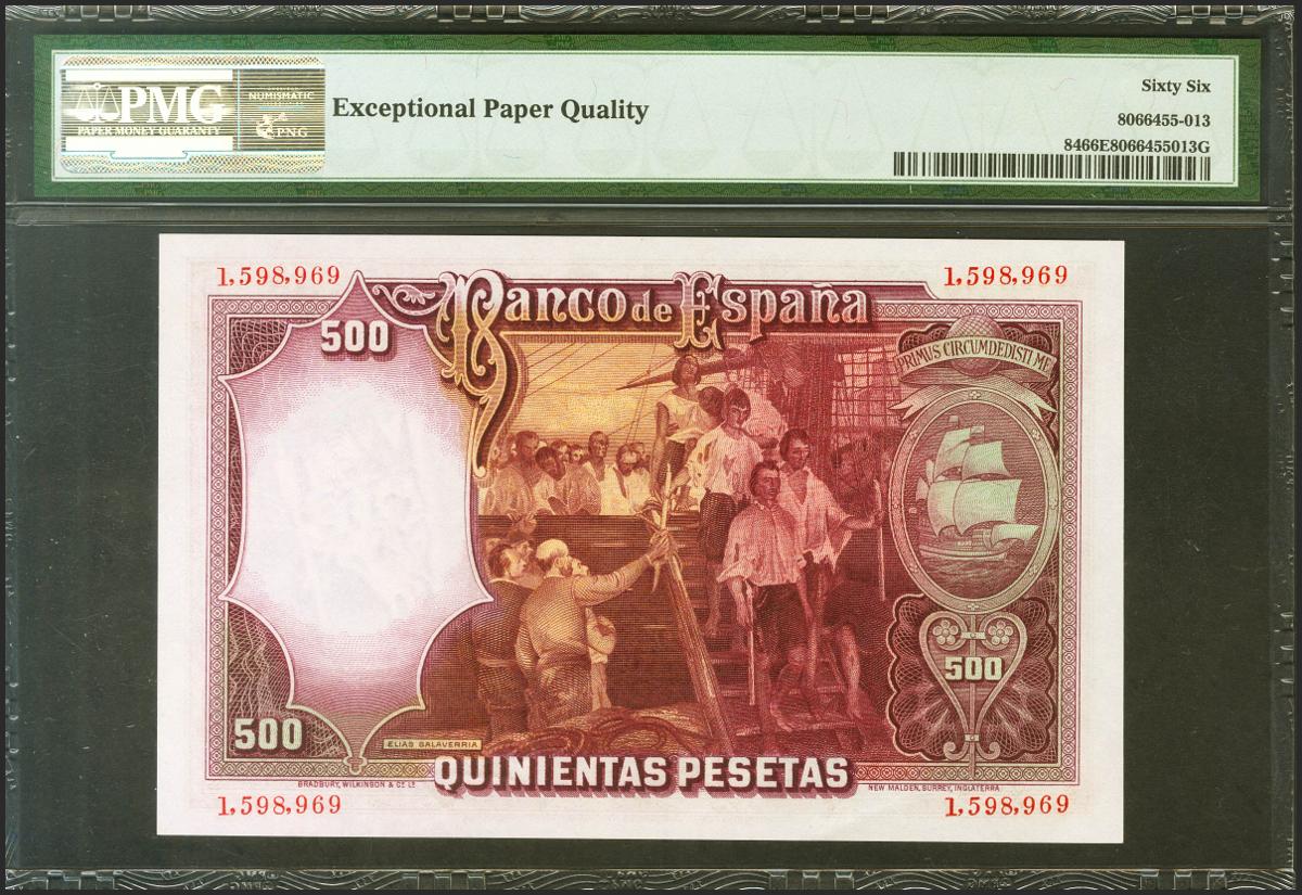 500 Pesetas. 25 de Abril de 1931. Sin serie. (Edifil 2021: 361, Pick: 84). Apresto original. Encapsulado PMG66EPQ.