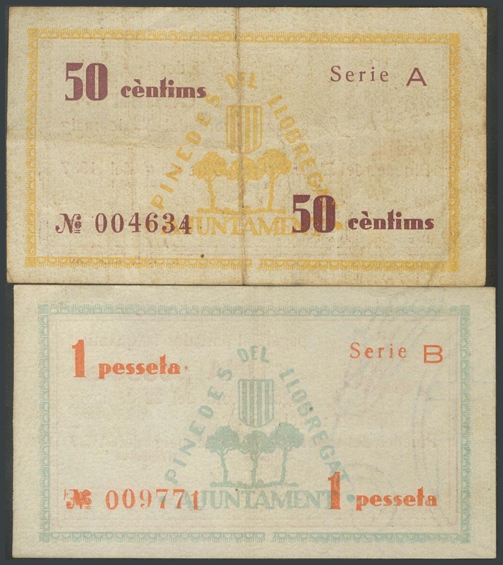 PENEDES DEL LLOBREGAT (BARCELONA). 50 Céntimos y 1 Peseta. Mayo 1937. Serie A y B, respectivamente. (González: 9229/30). MBC+/EBC.