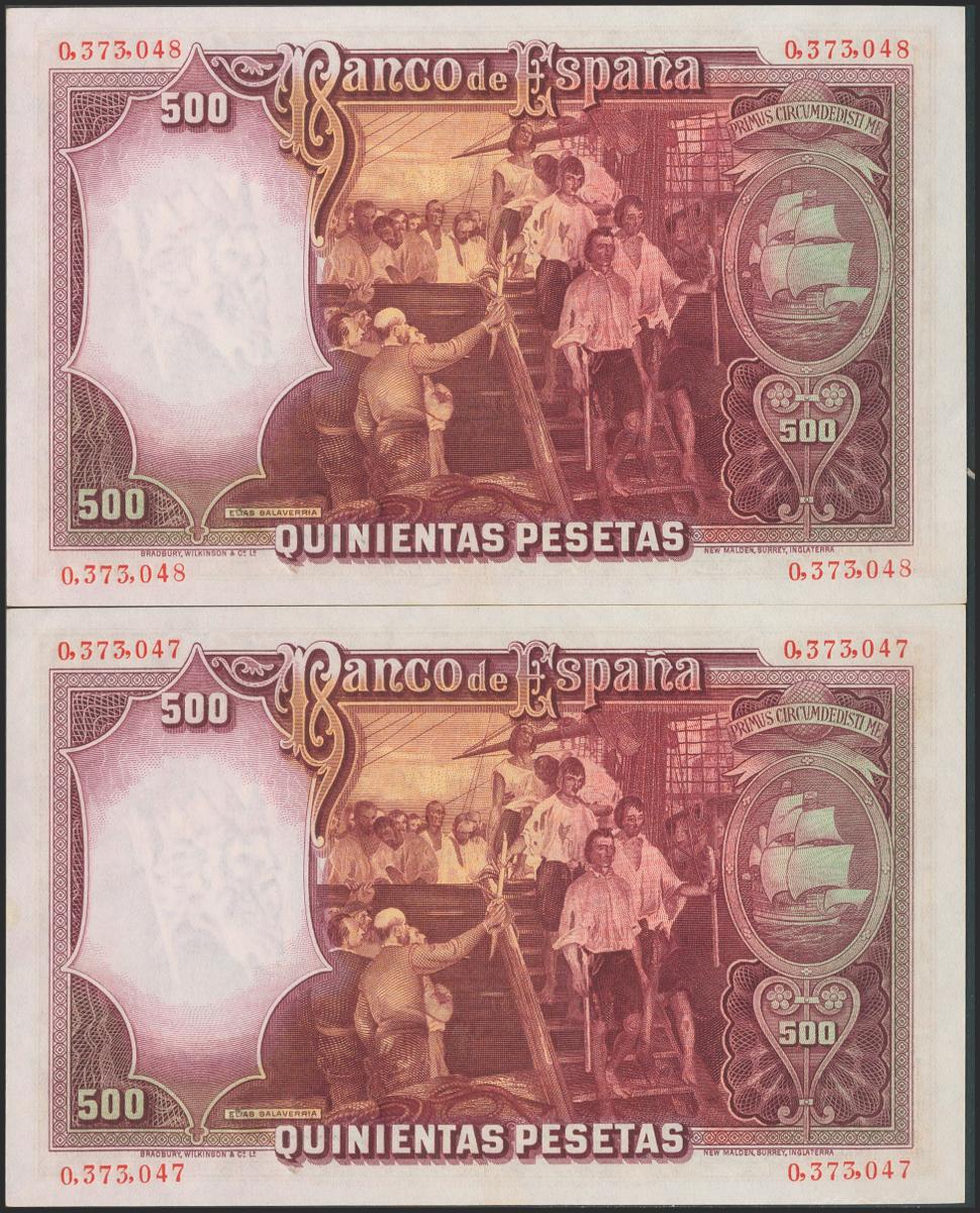 500 Pesetas. 25 de Abril de 1931. Pareja correlativa. Sin serie. (Edifil 2021: 361). Apresto original. SC-.