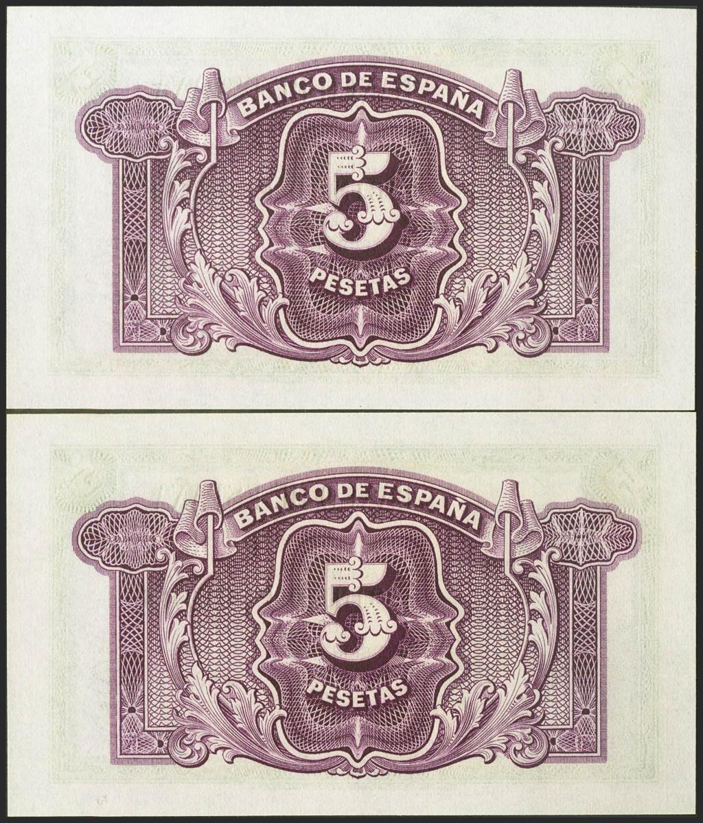 5 Pesetas. 1935. Certificado de Plata. Pareja correlativa. Sin serie. (Edifil 2021: 363). Conserva todo su apresto original y en una excepcional calidad. SC.