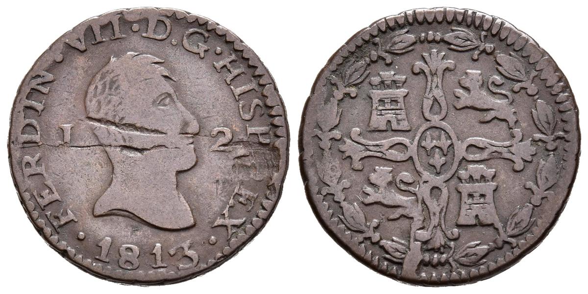 FERNANDO VII (1808-1833). 2 Maravedís (Ae. 3,18g/19mm). 1813. Jubia. Busto desnudo. (Cal-2019-125). MBC/MBC+. Rayitas en anverso. Escasa.