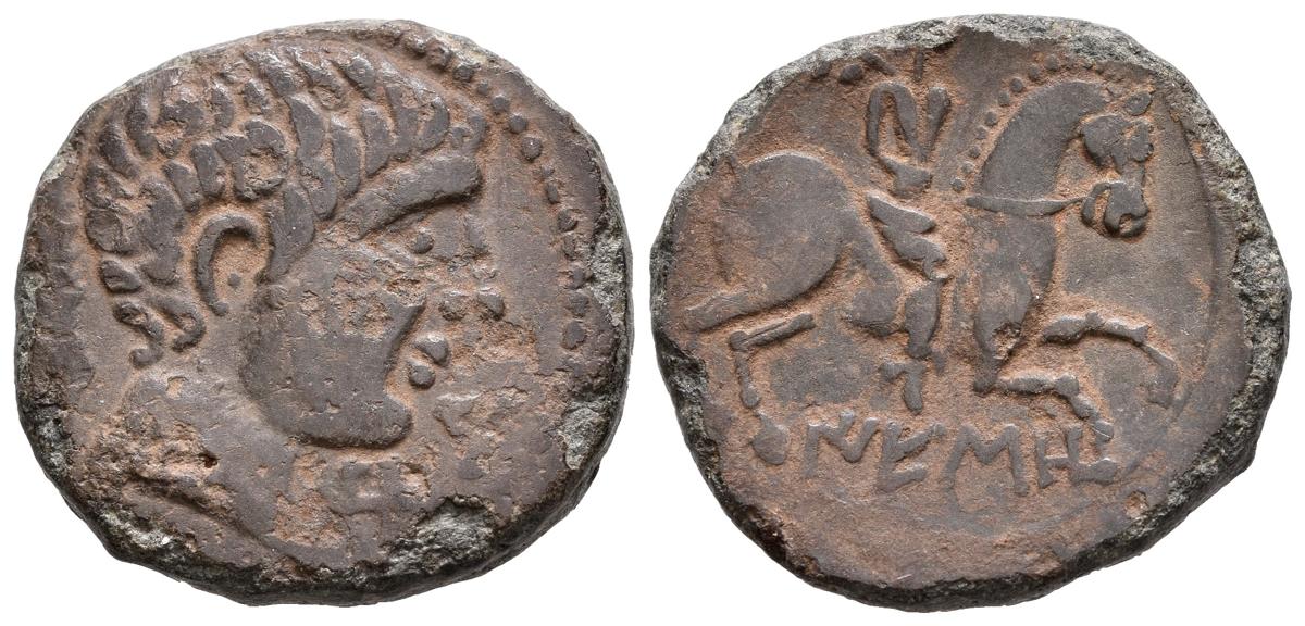 IESO (Guisona, Lérida). As. (Ae. 6,13g/22mm). 120-20 a.C. (FAB-1424). Anv: Cabeza masculina a derecha, detrás palma, delante letras ibéricas BeL. Rev: Jinete con palma a derecha, debajo leyenda ibérica: IESO. MBC-. Escaso.