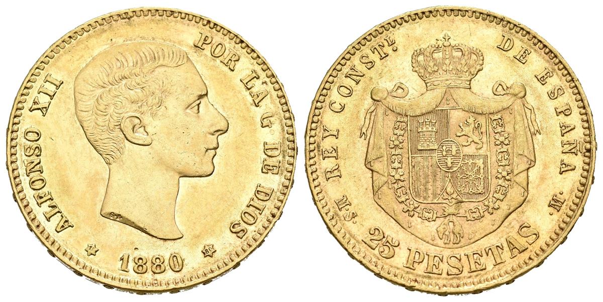 ALFONSO XII (1874-1885). 25 Pesetas. (Au 8,07g/24mm). 1880 *18-80. Madrid MSM. (Cal-2019-79). EBC-.