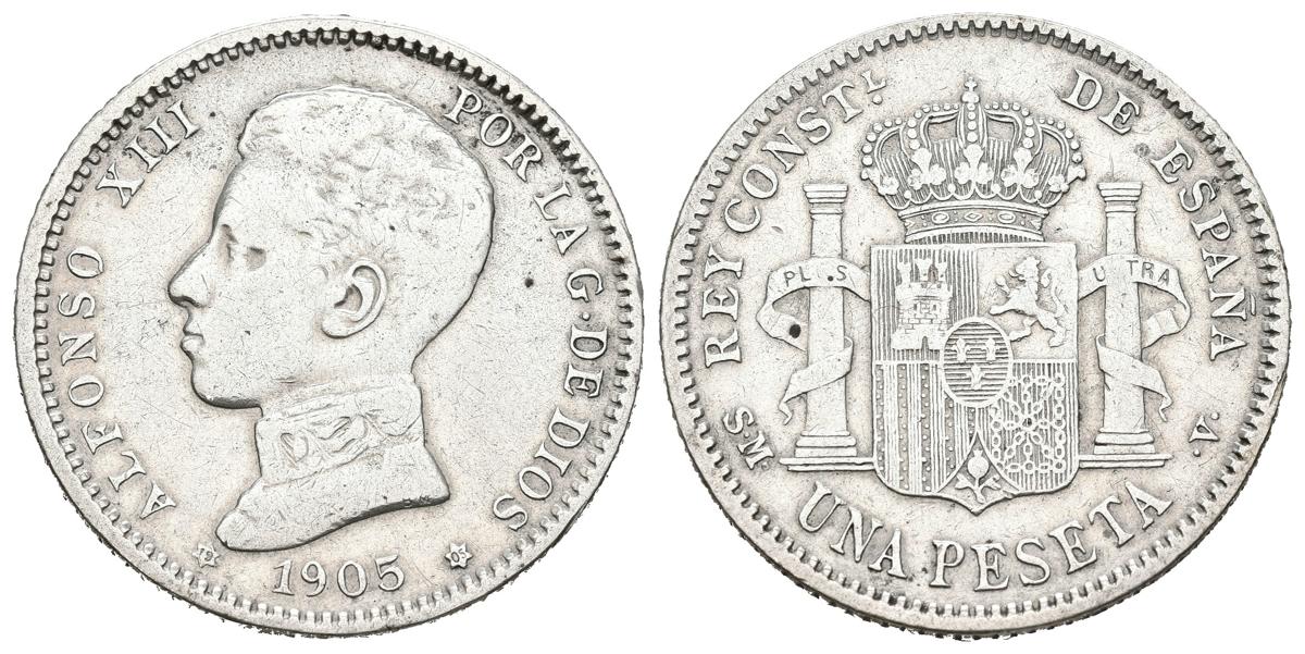 ALFONSO XIII (1885-1931). 1 Peseta. (Ar. 4,85g/23mm). 1905 *19-05. Madrid SMV. (Cal-2019-70). MBC-.