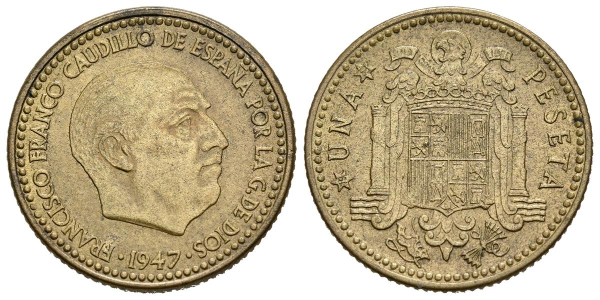ESTADO ESPAÑOL (1936-1975). 1 Peseta. (Al-Cu. 3,37g/20mm). 1947 *19-53. Madrid. (Cal-2019-53). EBC+.