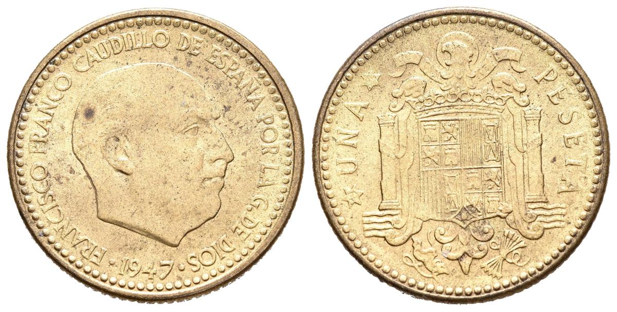 ESTADO ESPAÑOL (1936-1975). 1 Peseta. (Al-Ae. 3,58g/21mm). 1947 *19-54. Madrid. (Cal-2019-54). SC. Procedente de tira.