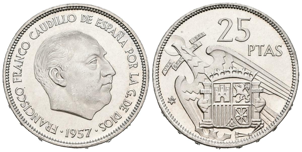 ESTADO ESPAÑOL (1936-1975). 25 Pesetas (Ni. 8,36g/27mm). 1957. *74. Madrid. (Cal-2019-129). SC. Precioso brillo.