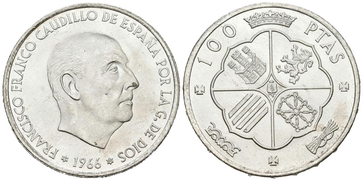 ESTADO ESPAÑOL (1936-1975). 100 Pesetas. (Ar. 18,93g/34mm). 1966 *19-68. Madrid. (Cal-2019-147). SC. Brillo original.