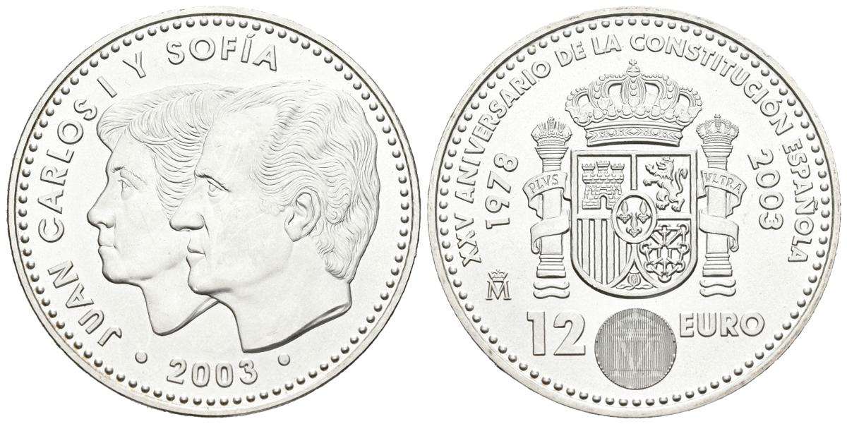 JUAN CARLOS I (1975-2014). 12 Euros. (Ar. 18,02g/33mm). 2003. Madrid. XXV Aniversario de la Constitución. (Km#1051). SC.