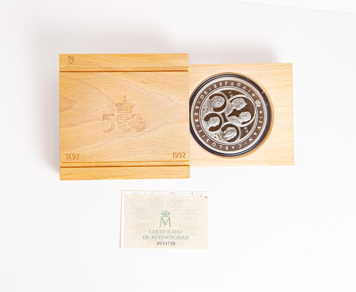 JUAN CARLOS I (1975-2014). 10.000 Pesetas (Ar. 168,75g/73mm). Quinto Centenario. Serie I. 1989. FNMT. PROOF. Incluye estuche original y certificado de autenticidad. Tirada de 60.000 unidades