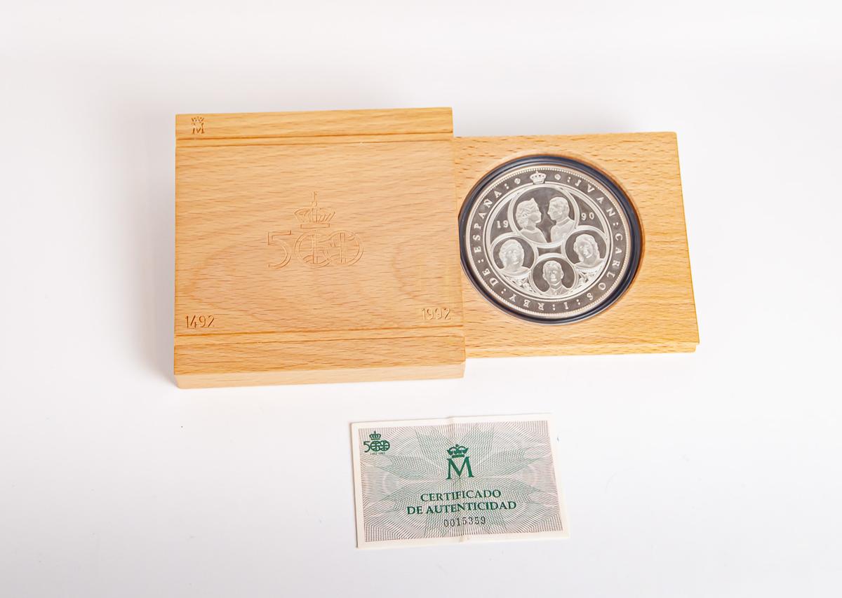 JUAN CARLOS I (1975-2014). 10.000 Pesetas (Ar. 168,75g/73mm). Quinto Centenario. Serie III. 1990. FNMT. PROOF. Incluye estuche original (no incluye cajita de cartón) y certificado de autenticidad. Tirada de 40.000 unidades