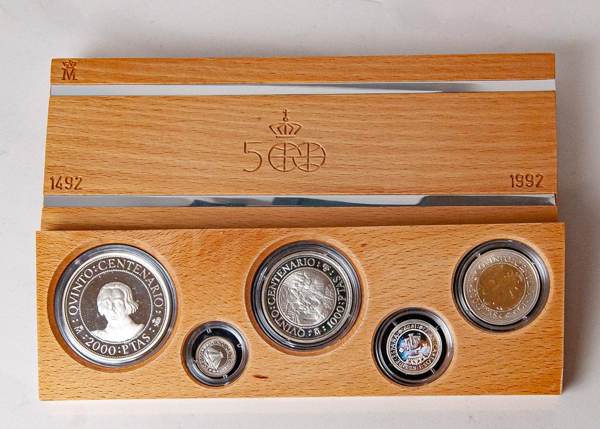 JUAN CARLOS I (1975-2014). Colección de 5 valores de plata emitidos por la FNMT. Valores de 100, 200, 500, 1000 y 2000 Pesetas. Serie I. 1989. Flor de cuño. Tirada de 150 mil unidades. Flor de cuño. Incluye estuche original y certificado de autenticidad.