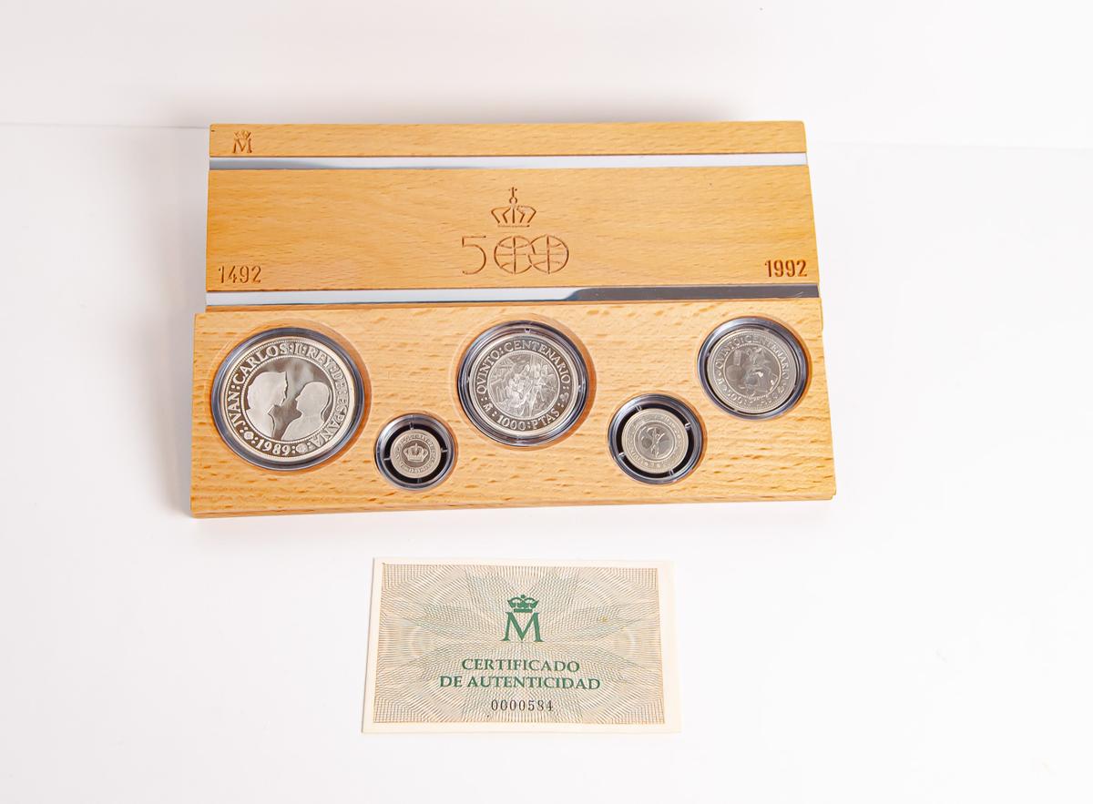 JUAN CARLOS I (1975-2014). Estuche completo compuesto por 5 monedas en plata de valores comprendidos entre 2000 y 100 Pesetas. Quinto Centenario. 1989. Serie I. FNMT. FDC. Incluye estuche original y certificado de autenticidad.