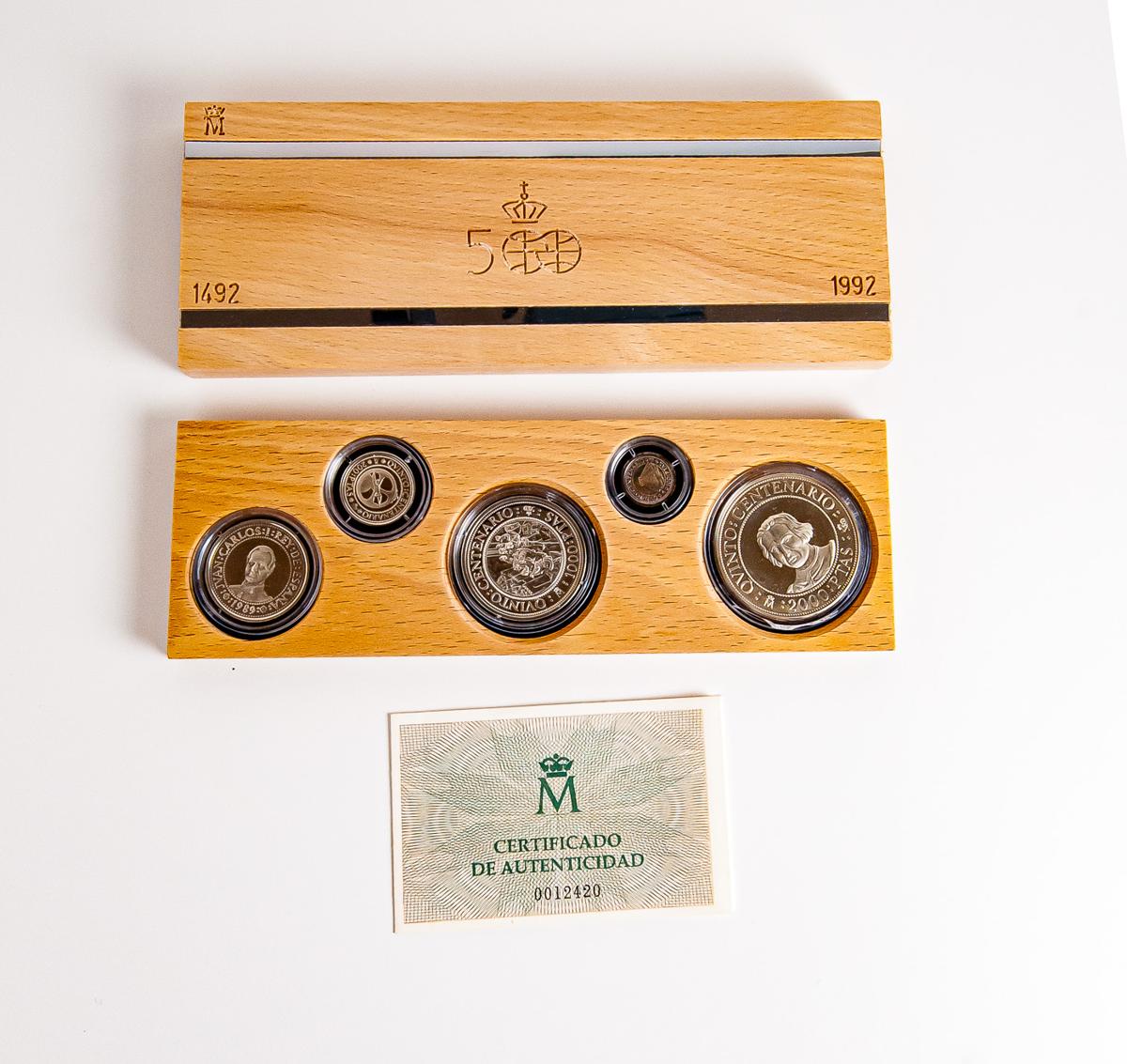 JUAN CARLOS I (1975-2014). Estuche completo compuesto por 5 monedas en plata de valores comprendidos entre 2000 y 100 Pesetas. Quinto Centenario. 1989. Serie I. FNMT. FDC. Incluye estuche original y certificado de autenticidad.