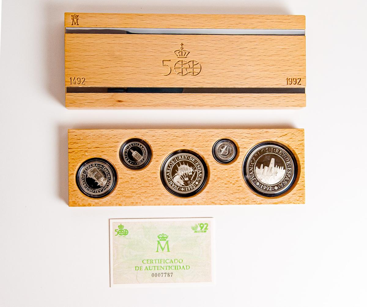 JUAN CARLOS I (1795-2014). Estuche completo compuesto por 5 monedas en plata de valores comprendidos entre 2000 y 100 Pesetas. Expo Sevilla 1992. Serie IV. FNMT. FDC. Incluye estuche original.